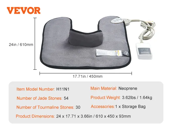 VEVOR far-infrared heating pad is the ideal choice for those seeking soothing heat and health. Combining far-infrared rays, 54 natural jade, and 30 tourmaline stones, it deeply soothes muscle tension, promotes blood circulation, and improves sleep quality. Choose it to embrace a healthier living!