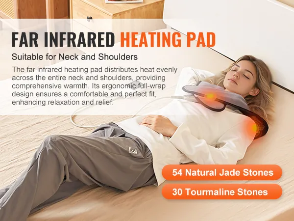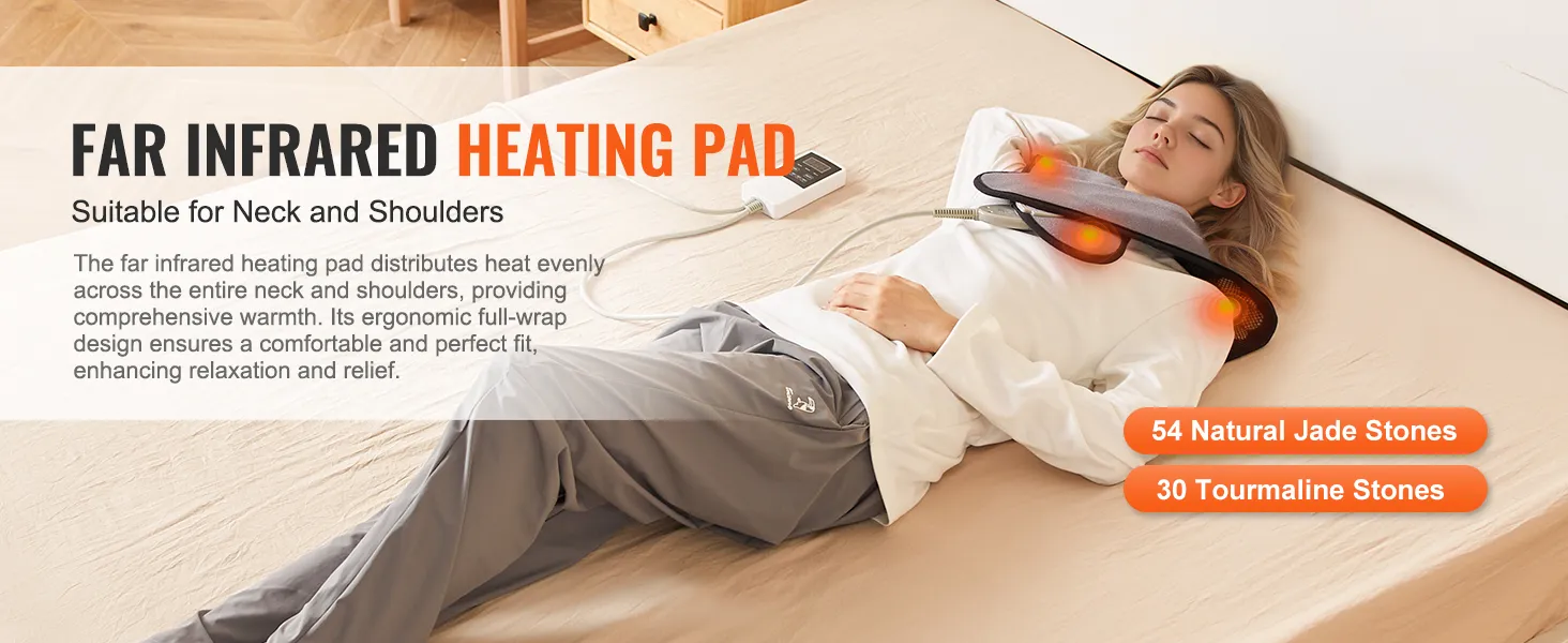 VEVOR Far Infrared Heating Pad, 54 Natural Jade & 30 Tourmaline Stones Heating Pad for Neck & Shoulder Pain Relief, 103 - 159 ℉ Heating Pad with Smart Controller & Auto-Off, Ideal Gift for Mom Dad