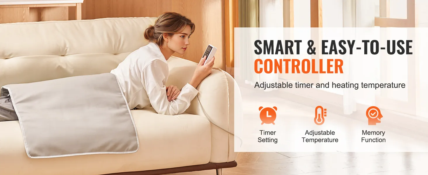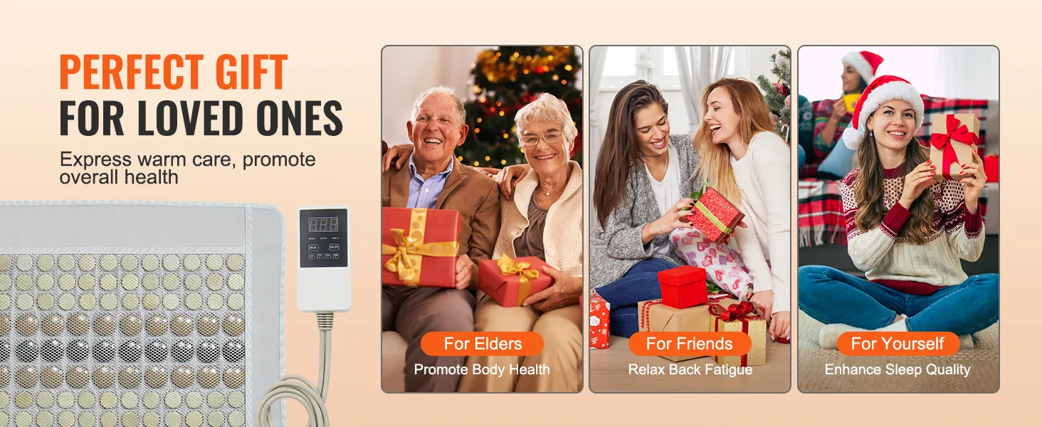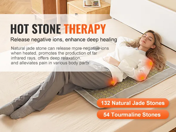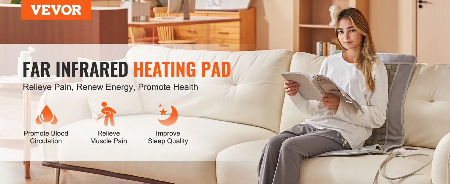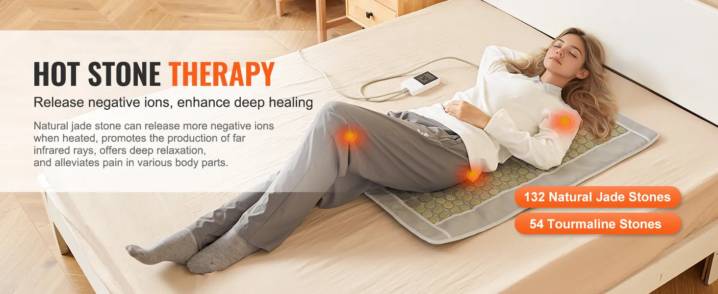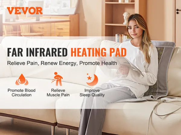 VEVOR far-infrared heating pad is the ideal choice for those seeking soothing heat and health. Combining far-infrared rays, 132 natural jade, and 54 tourmaline stones, it deeply soothes muscle tension, promotes blood circulation, and improves sleep quality. Choose it to embrace a healthier living!