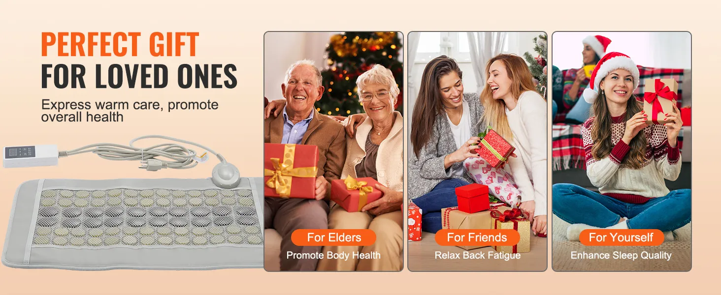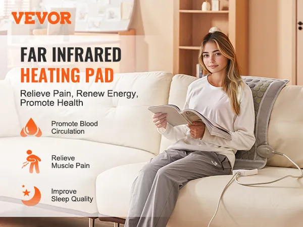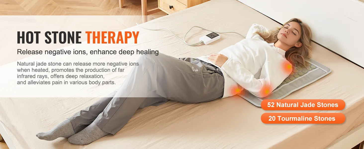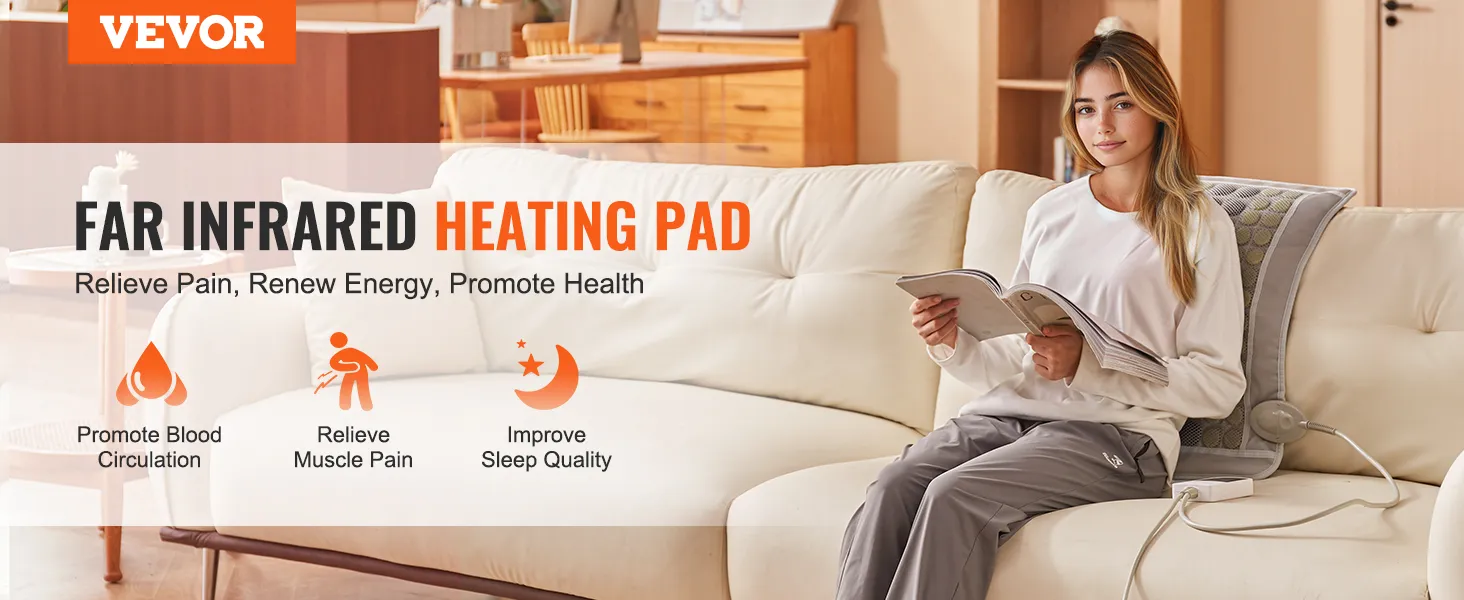 VEVOR far-infrared heating pad is the ideal choice for those seeking soothing heat and health. Combining far-infrared rays, 52 natural jade, and 20 tourmaline stones, it deeply soothes muscle tension, promotes blood circulation, and improves sleep quality. Choose it to embrace a healthier living!