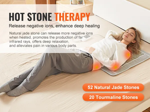 3-in-1 Health Therapy: VEVOR 23.9" x 15.8" far infrared heating pad combines professional far-infrared technology, 52 natural jade stones and 20 tourmaline stones to deeply penetrate and relieve body muscle, promote blood circulation, improve sleep quality and restore body vitality, perfect for daily relaxation and stress relief.
