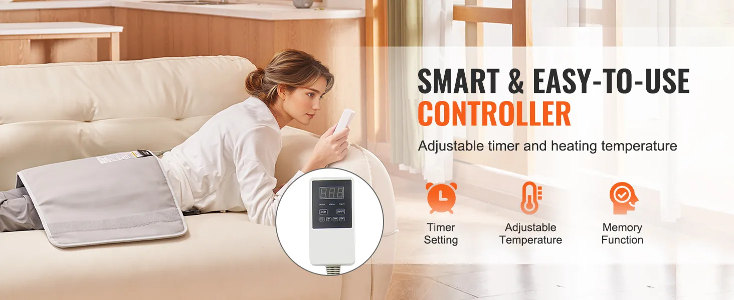 Precise Temperature Control: Adjust the temperature from 103°F to 159°F with the smart controller to match your preferences. It also features a memory function that remembers your last settings, 0 - 240 mins timer setting along with an automatic shut-off feature to prevent overuse and ensure you never forget to turn it off.