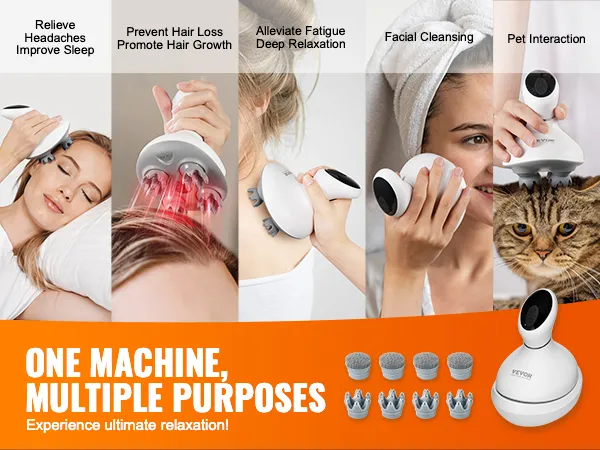 Het is ontworpen om vermoeidheid te verlichten, de slaapkwaliteit te verbeteren, de gezondheid en groei van het haar te bevorderen en de poriën in het gezicht te reinigen. Het biedt uitgebreide zorg in één apparaat.