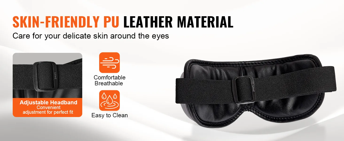 Pamper your delicate eye area with our skin-friendly PU leather. High-quality material provides a comfortable and breathable experience, ensuring easy cleaning for lasting freshness. Adjust the headband size effortlessly for a perfect fit.