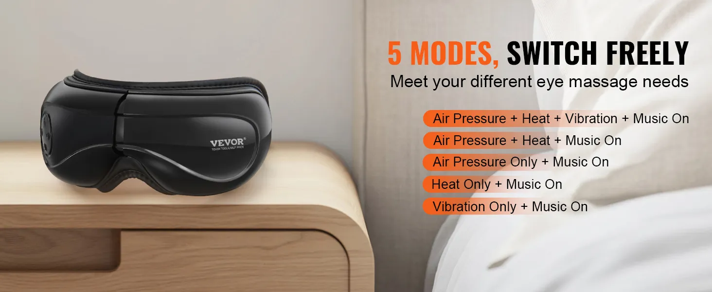 5 Modes for Personalized Relief: Our heated eye massage mask features 5 customizable massage modes. Whether you're combating eye fatigue from work or seeking daily eye care, easily switch between modes for a personalized massage experience.
