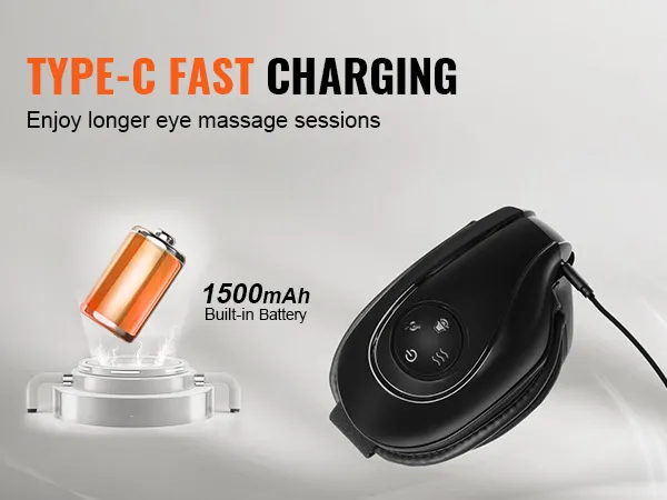 Enjoy quick and efficient charging with Type-C, ensuring you're always ready for your next soothing session. Our heated eye massager is built-in 1500mAh battery, supporting continuous use and making it convenient for daily use and travel.