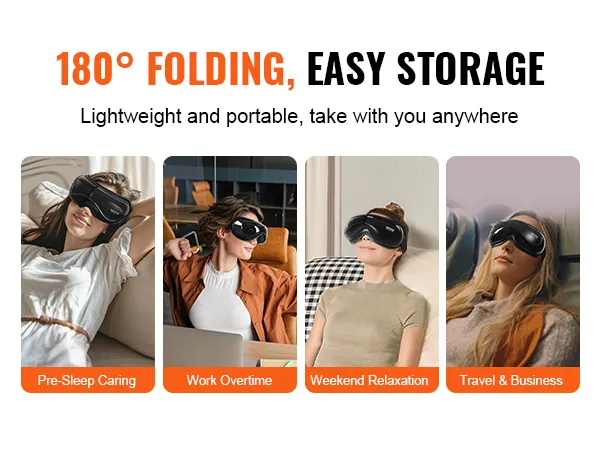 Perfect for Any Occasion: VEVOR eye care massager is 180° foldable and portable, ideal for home, travel, or office use—a thoughtful gift for parents, friends, and employees alike. Use it to relieve eye muscle tension, fatigue, and puffiness, promoting blood circulation and enhancing sleep quality.