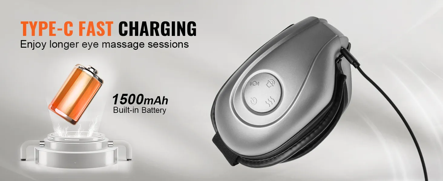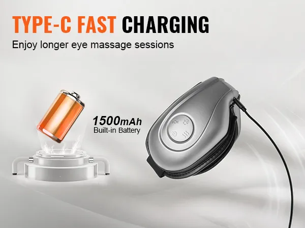 Enjoy quick and efficient charging with Type-C, ensuring you're always ready for your next soothing session. Our heated eye massager is built-in 1500mAh battery, supporting continuous use and making it convenient for daily use and travel.