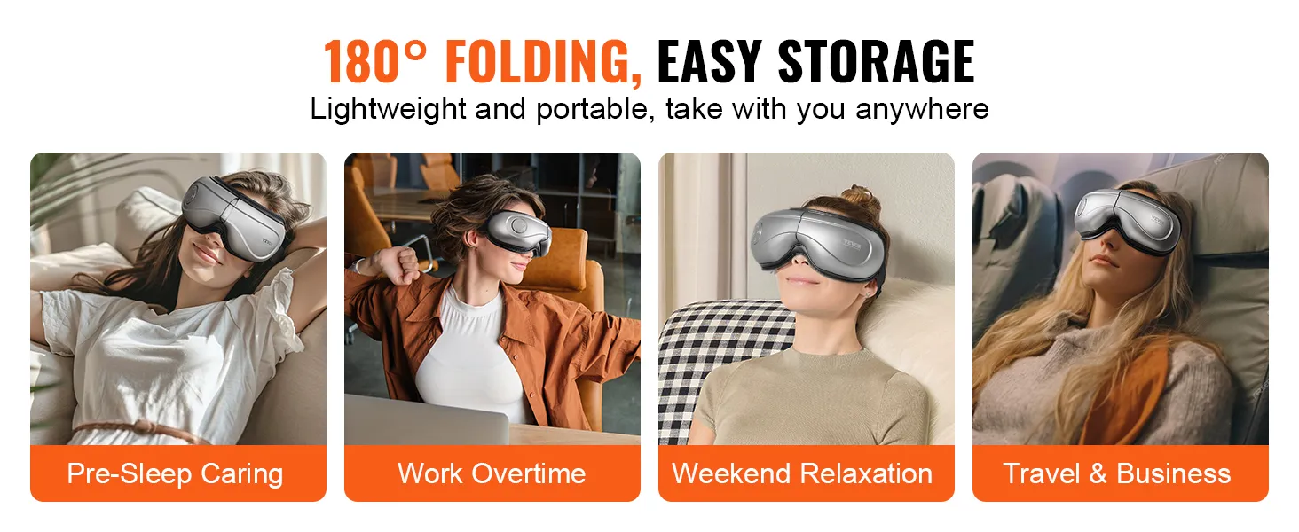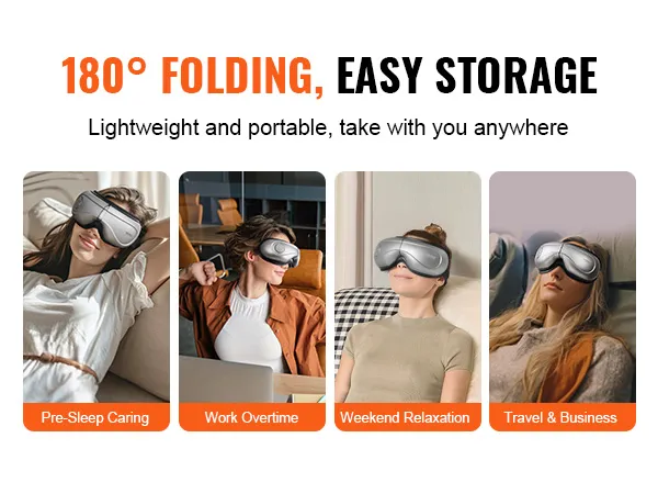 Perfect for Any Occasion: VEVOR eye care massager is 180° foldable and portable, ideal for home, travel, or office use—a thoughtful gift for parents, friends, and employees alike. Use it to relieve eye muscle tension, fatigue, and puffiness, promoting blood circulation and enhancing sleep quality.