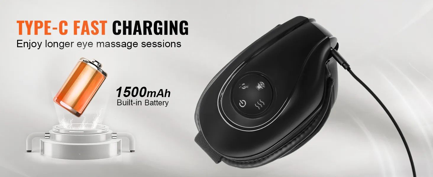 Enjoy quick and efficient charging with Type-C, ensuring you're always ready for your next soothing session. Our heated eye massager is built-in 1500mAh battery, supporting continuous use and making it convenient for daily use and travel.