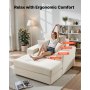 VEVOR Chaise Longue 1115 mm, modulaire bank voor de lounge zonder steunpoten, extra grote corduroy leesstoel met kussens, armleuningen en diepe zitting, loungestoel voor woonkamer en slaapkamer, beige