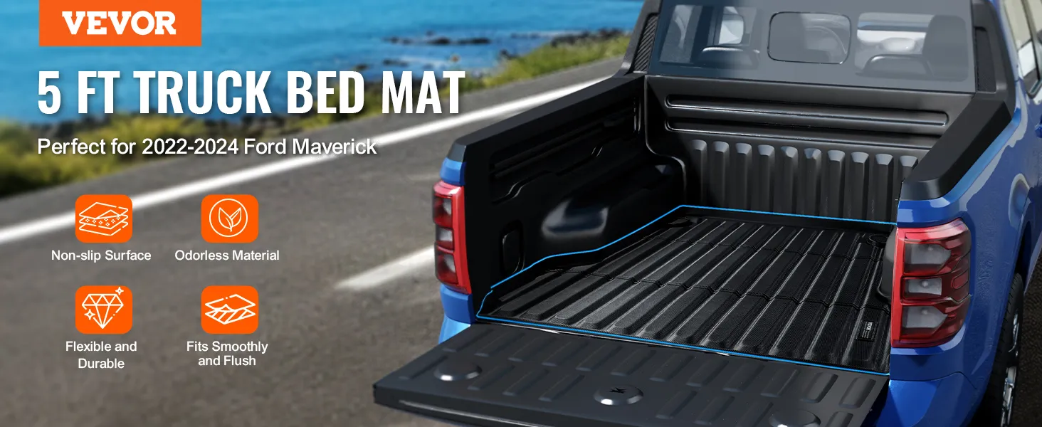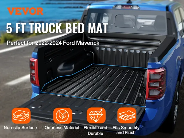 Custom Fit: This truck bed mat is specifically designed for 2022-2024 Ford Maverick, compatible only with 5 FT bed lengths. It features a precise 3D contour based on original vehicle data for a better fit. Please confirm your vehicle's compatibility. If there are creases after receiving it, simply place a heavy object on it for a while to restore it.