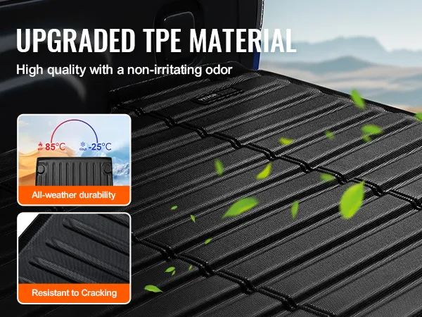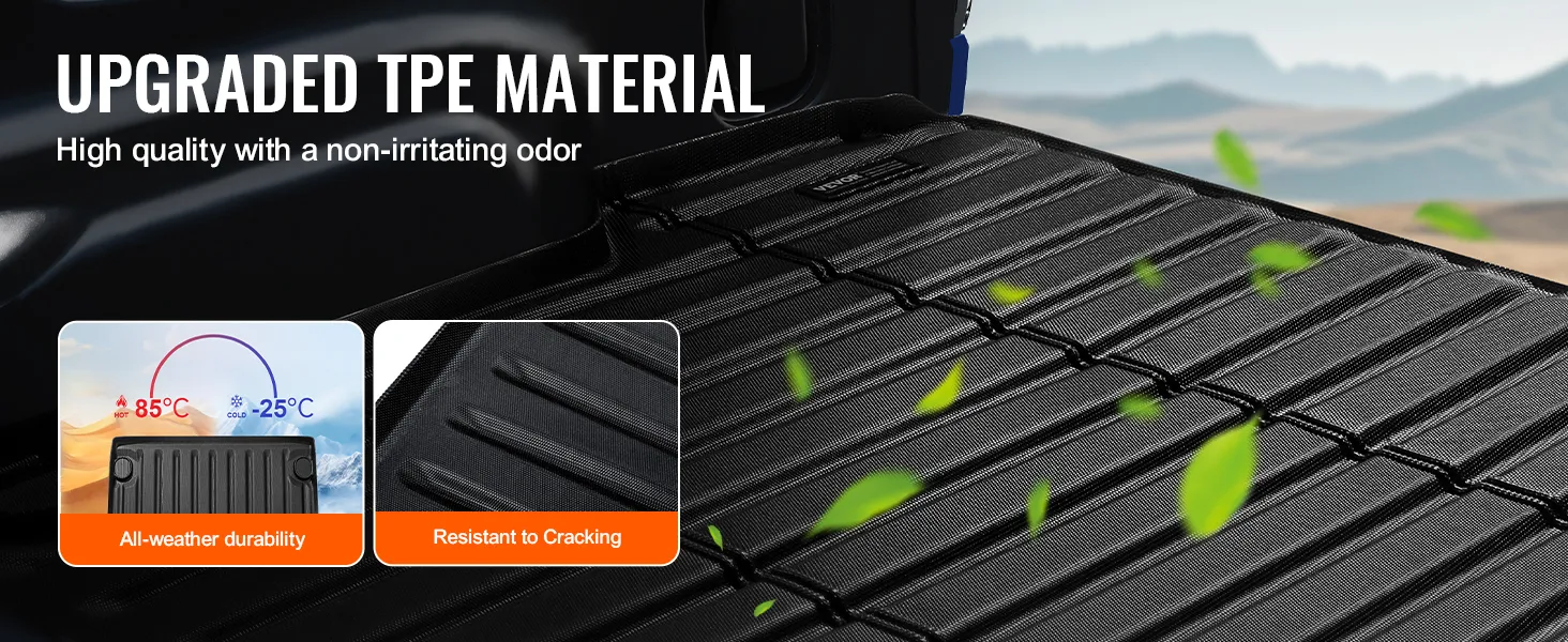 Odor-free TPE Material: Made from upgraded, durable TPE material, this truck bed liner mat withstands all weather conditions, protecting against outdoor exposure and sharp objects. It is free from irritating smells, ensuring secure use.