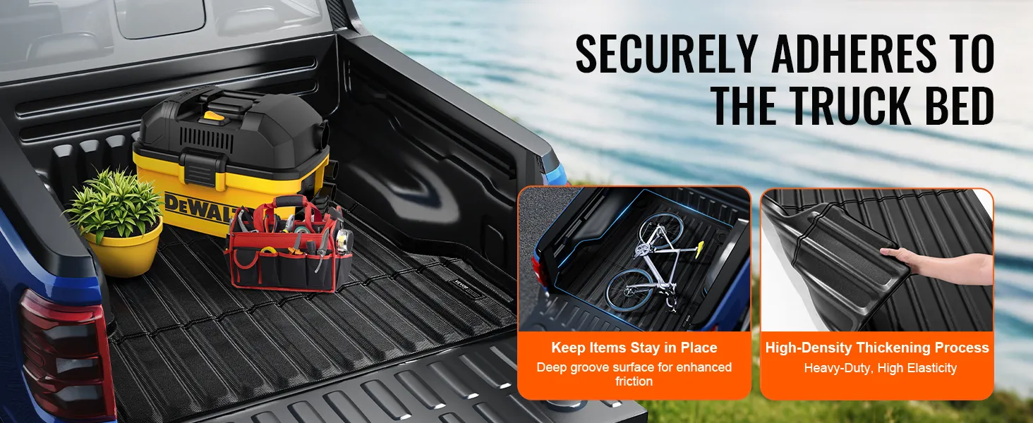Easy to Clean: The high-density waterproof material of the truck mat prevents penetration from mud and dirt, allowing for quick rinsing. It maintains a fresh look even after prolonged use, keeping your truck bed clean and neat.