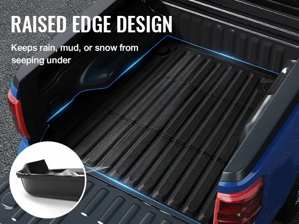 The truck mat's upgraded raised edges block rain, mud or snow from flowing into the bed, reducing odor and making it less likely to harbor dirt.