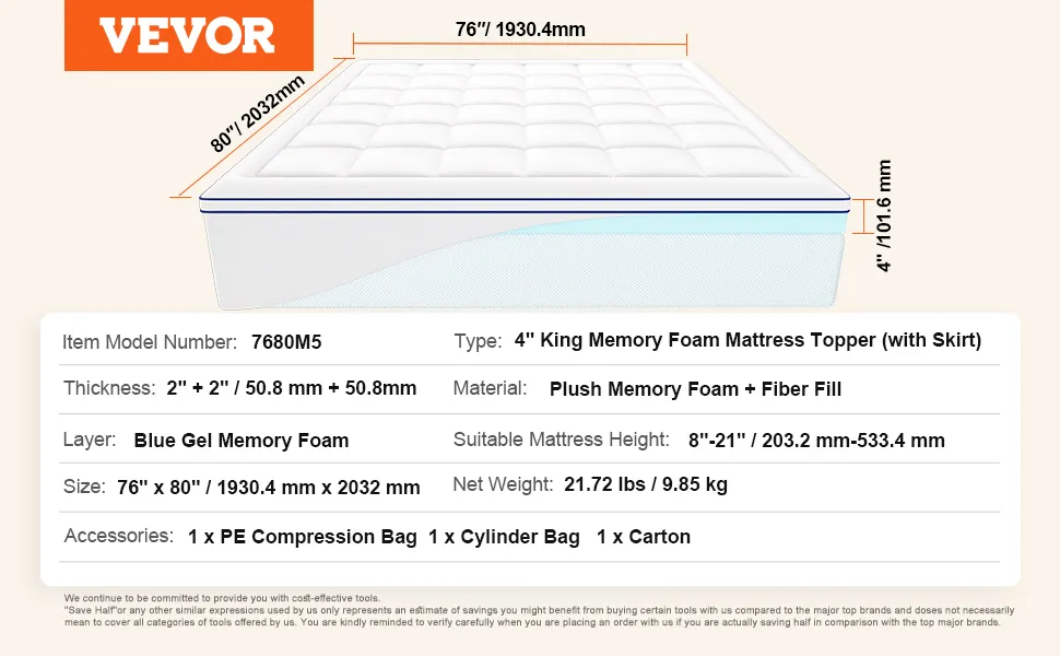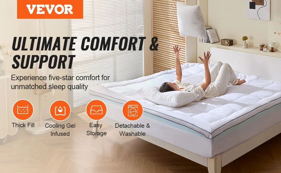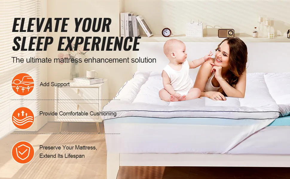Luxueuze comfortervaring: ervaar de sensatie van premium traagschuim en fiberfill die je huid verwennen. Onze matrastopper is voorzien van luchtzakken van schuim met hoge dichtheid. Dit zorgt voor ademend vermogen, terwijl de dikte van 101,6 mm precies de juiste ondersteuning biedt. Vernieuw je oude matras, verzacht een te hard matras of verleng gewoon de levensduur ervan.