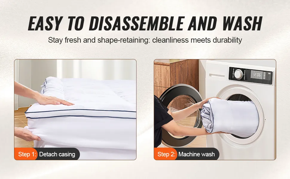 Gemakkelijk te wassen en te onderhouden: onze matrastopper met afneembare, machinewasbare hoes maakt schoonmaken een fluitje van een cent. Geniet van een frisse, gezonde slaap voor uw gezin! Onze matrastopper met hoogwaardig traagschuim behoudt zijn vorm en ondersteuning, zelfs na het wassen, waardoor hij jarenlang meegaat.