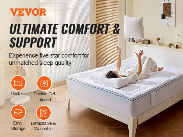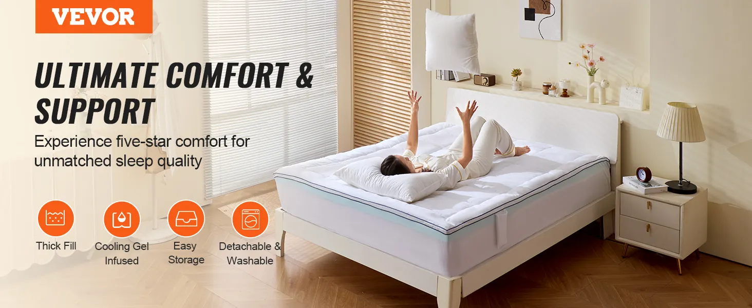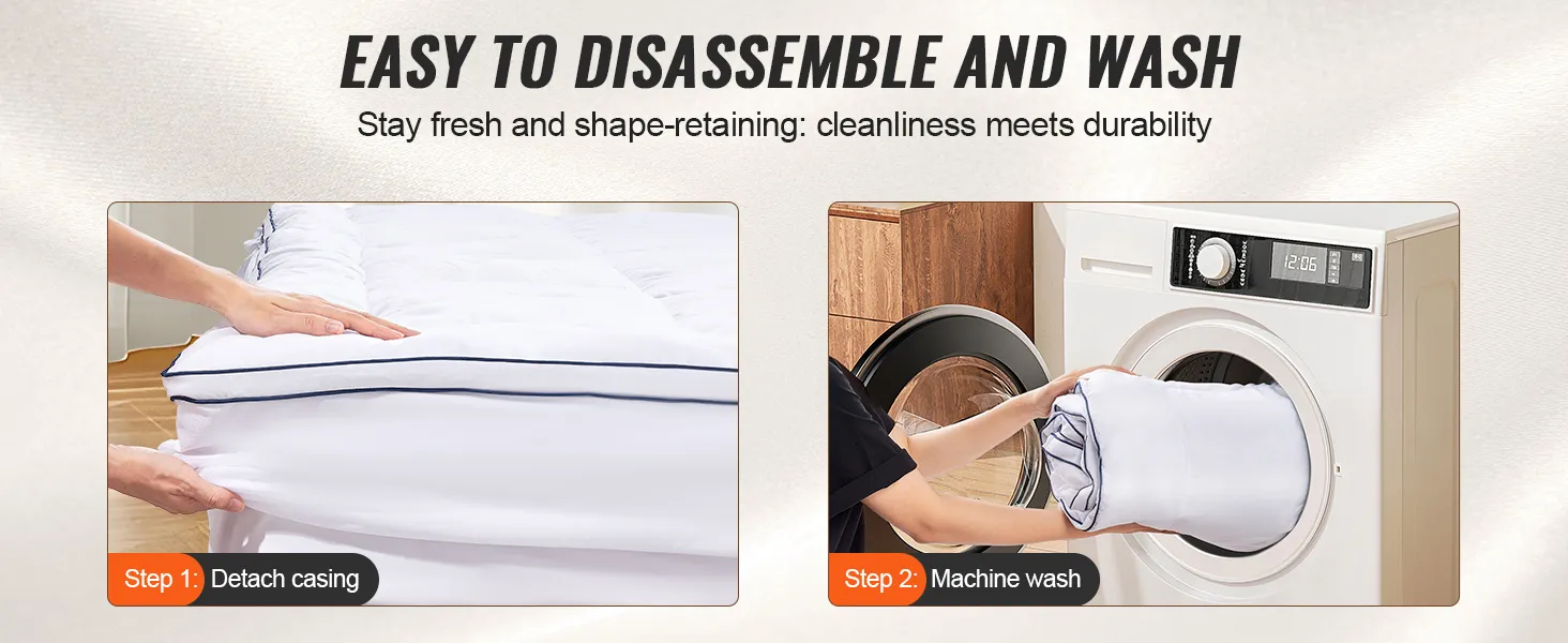 The detachable layer with a 360° elastic band makes cleaning a breeze. Just unzip, detach the mattress topper, toss it in the washing machine, and keep your bed fresh and clean.