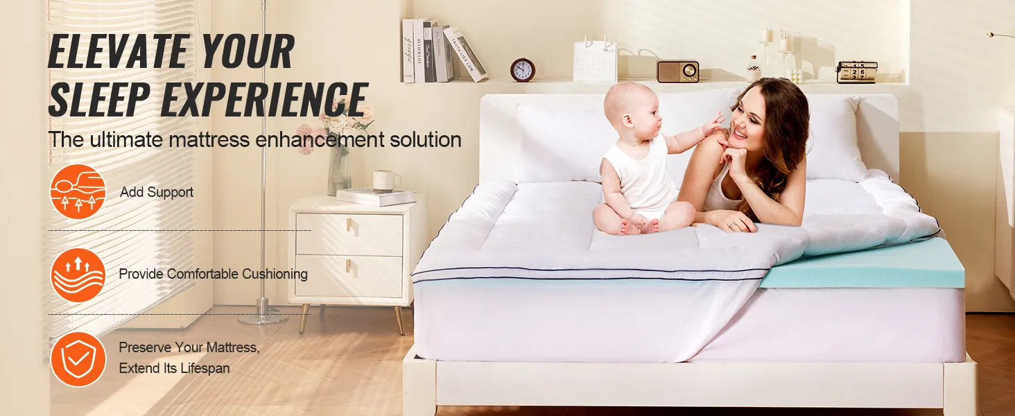 • Cooling Gel Technology Material: Our mattress topper features cooling gel-infused materials that help manage heat and wick away moisture, ensuring you stay cool and comfy all night long.
