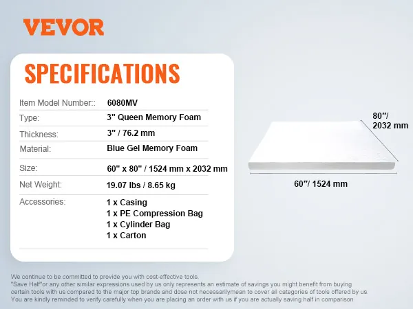 Premium Plush Memory Foam: Our premium plush memory foam mattress topper offers a soft, comfortable touch for your skin. At 3" (76.2 mm) thick, it provides ideal support, revitalizing old mattresses, softening overly firm ones, and extending their lifespan—allowing you to enjoy five-star comfort.