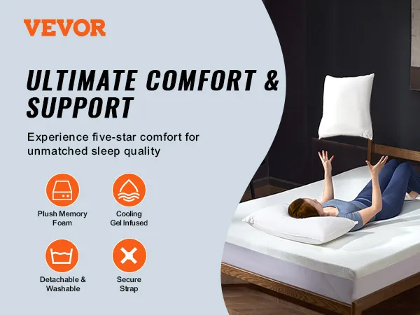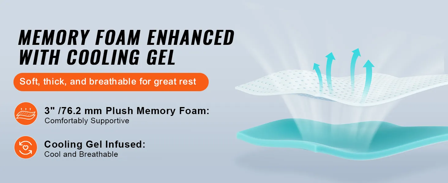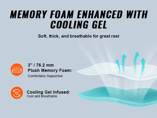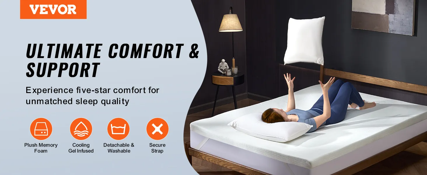 VEVOR Mattress Topper, Queen Size, 76.2 mm Thickness, Soft Memory Foam Pad, Premium Cooling Gel Infusion, Detachable and Washable Casing, Compressed Package for Quick Setup, Comfy Support for Any Bed