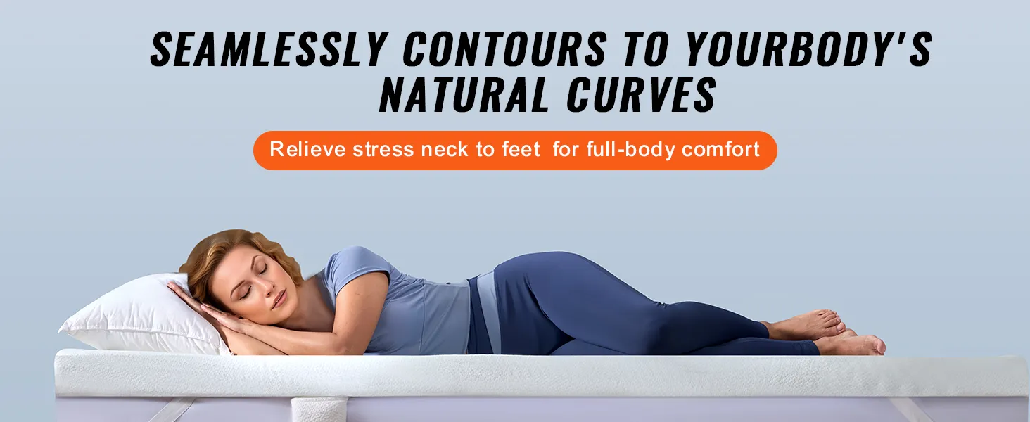 Enhanced Sleep Quality: Ergonomically designed to contour your body, our mattress topper effectively relieves pressure points for deep relaxation. The slow-rebound memory foam alleviates pain while keeping your spine aligned, ensuring an ideal sleep environment.