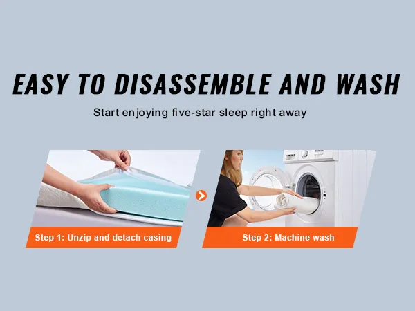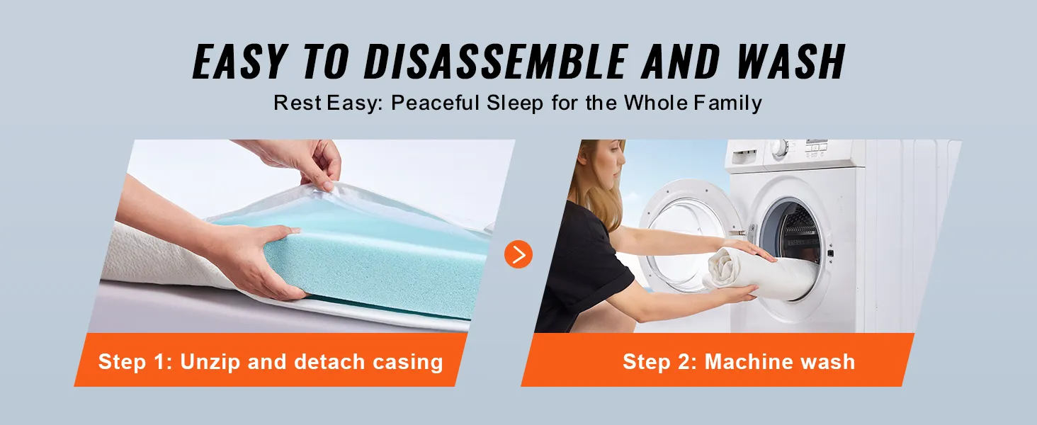 Our detachable mattress topper and high-quality zipper make cleaning hassle-free. No more worrying about cleaning bulky mattress—just unzip, detach the topper, toss it in the washing machine, and enjoy a fresh, clean bed every time.
