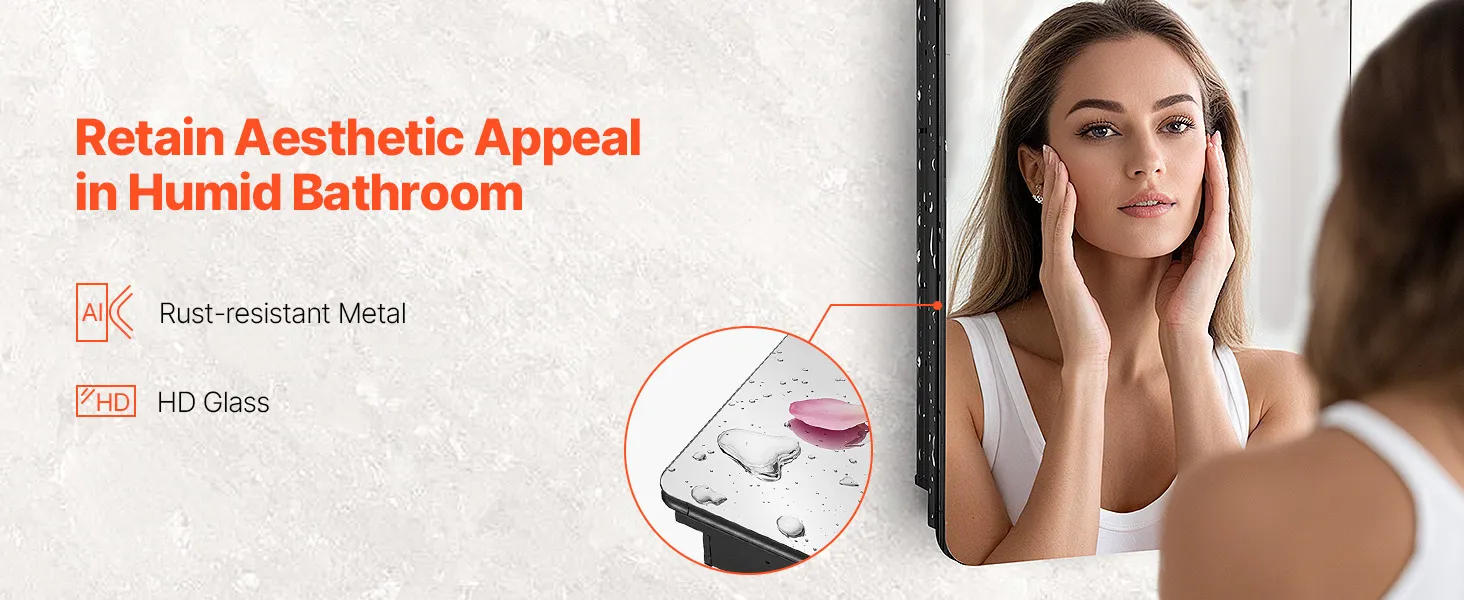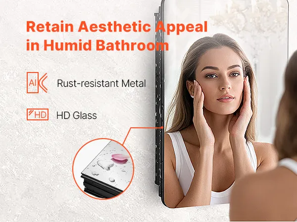 Esthetische en duurzame materialen: Deze medicijnkast met badkamerspiegel heeft een hoogwaardig zwart roestvrijstalen frame en een aluminium deurkozijn en is uitstekend bestand tegen roest. Hierdoor is hij ideaal voor vochtige ruimtes. De duurzaamheid is langdurig en zorgt ervoor dat het niet kromtrekt bij gebruik. Het moderne ontwerp en de afgeschuinde randen zorgen voor een stijlvolle, veilige uitstraling die schade voorkomt.