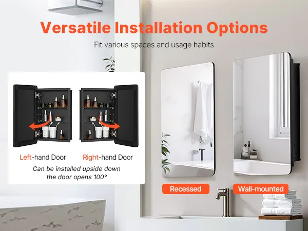 De spiegelkast is geschikt voor zowel wandmontage als vlakke inbouw en kan worden omgedraaid voor zowel links- als rechtsdraaiende deuren. Het past zich moeiteloos aan verschillende badkamermeubels aan en biedt extra comfort, afhankelijk van uw voorkeur.