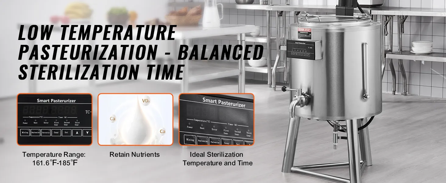 Pasteurization/Fermentation: The milk pasteurizer is compatible with a wide range of milk types—including cow, goat, sheep, camel, and buffalo—as well as popular plant-based alternatives like almond, coconut, soy, and wheat. It is also ideal for processing juices and other liquid foods. Effortlessly create homemade yogurt, sour cream, cheese, and a variety of healthful drinks, catering to your quality lifestyle and creative pursuits.
