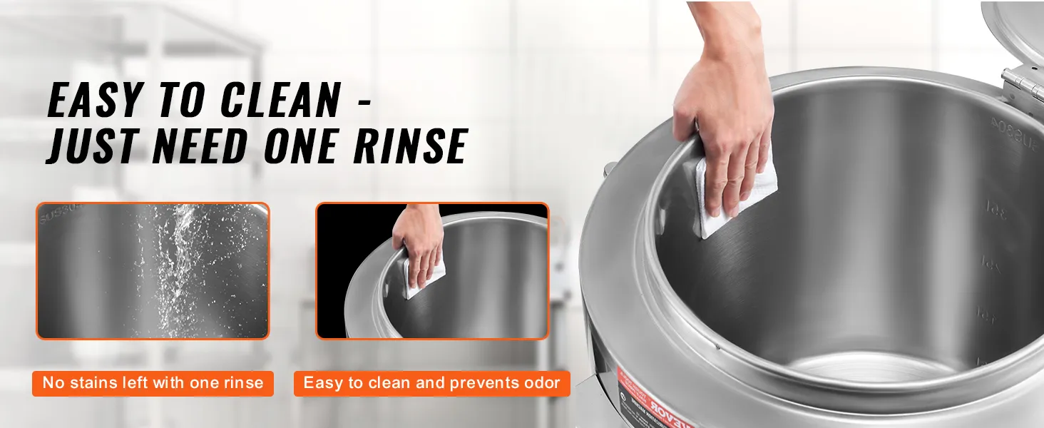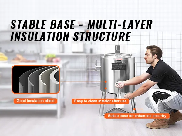 The pasteurizer is constructed with food-grade 304 stainless steel for the inner tank and a sturdy stainless steel outer shell, offering corrosion resistance, ensuring easy cleaning and a long lifespan.