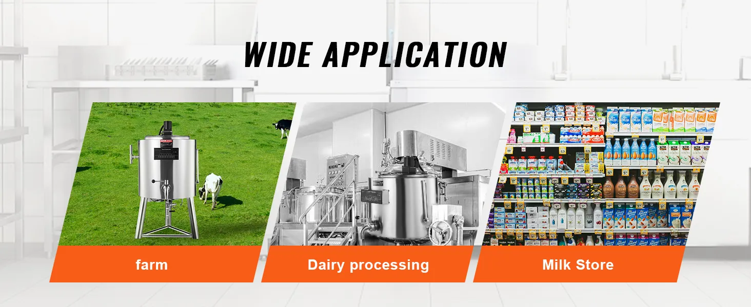 Our commercial milk pasteurization machine is widely used in milk bars, dairies, restaurants, ice cream shops, and farms, with potential extensions into pharmaceuticals and cosmetics.