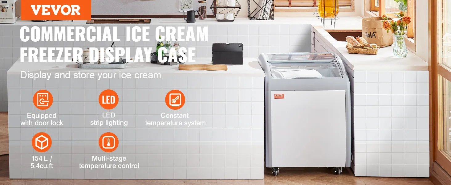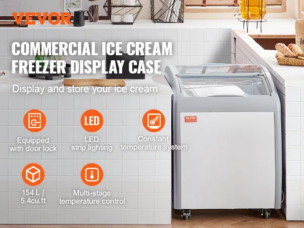 Professionele ijsvitrine: deze commerciële ijsvitrine heeft 2 ijsvitrines en is uitgerust met LED-verlichting en een goed zichtbare deur van gehard glas om het displayeffect te verbeteren. De klant kan eenvoudig zijn favoriete ijsje kiezen.
