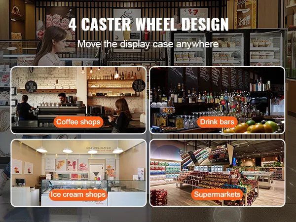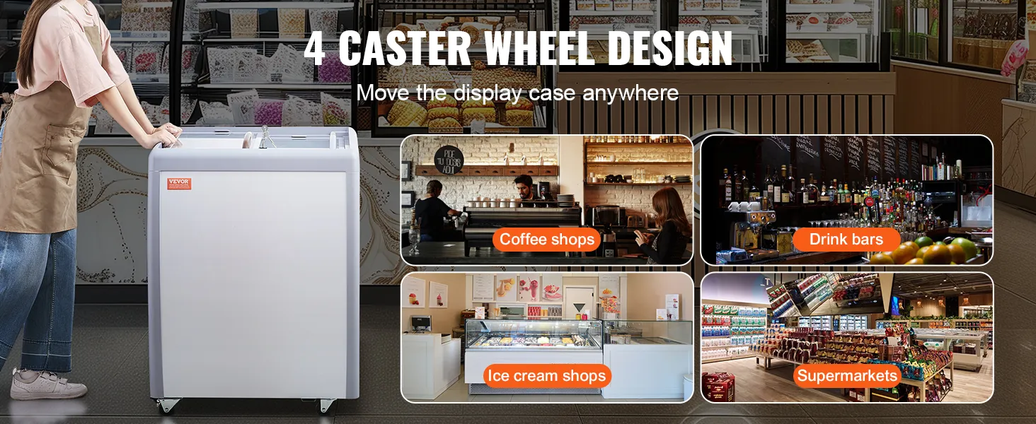 Mobile Casters: The restaurant ice cream dipping cabinet is equipped with 4 movable casters with locking mechanisms. This allows you to easily move it and facilitates cleaning or rearranging your space.