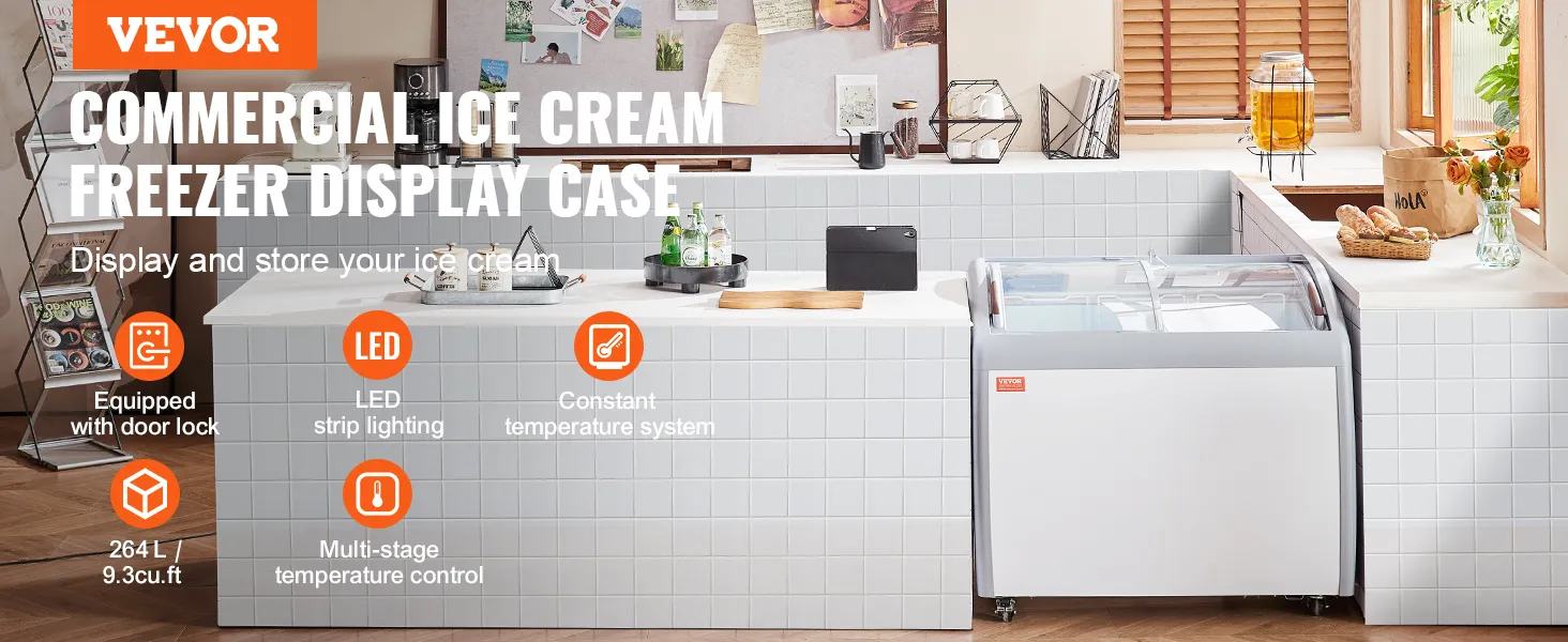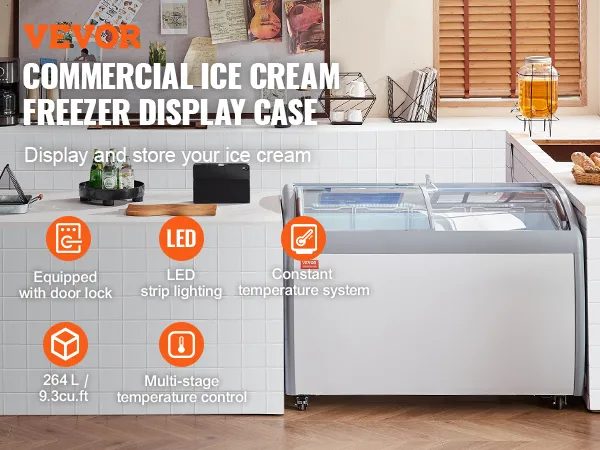 PROFESSIONELE IJS DISPLAYKAST: Deze commerciële ijsvitrine heeft 3 ijsvitrinemanden en is uitgerust met LED-stripverlichting en een goed zichtbare deur van gehard glas om het display-effect te verbeteren. Klanten kunnen eenvoudig hun favoriete ijsje kiezen.