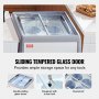 Glazen schuifdeuren: Elke mobiele vriezer met een glazen plank is uitgerust met glazen deuren die in beide richtingen opengaan voor gemakkelijke toegang tot het ijs. De deuren zijn voorzien van sloten voor extra veiligheid.