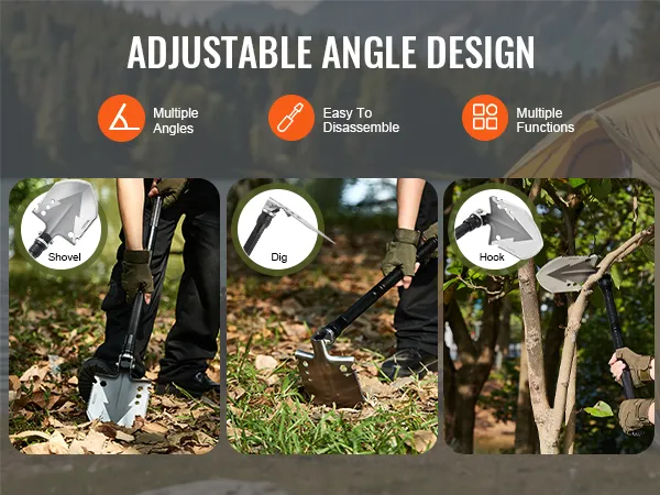 De compacte schep biedt hoekaanpassingen voor extra functionaliteit, zodat u takken kunt graven, hakken, uitgraven of zelfs vasthaken, wat veelzijdigheid biedt in elke buitenomgeving.