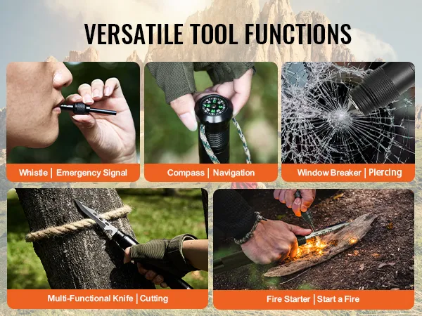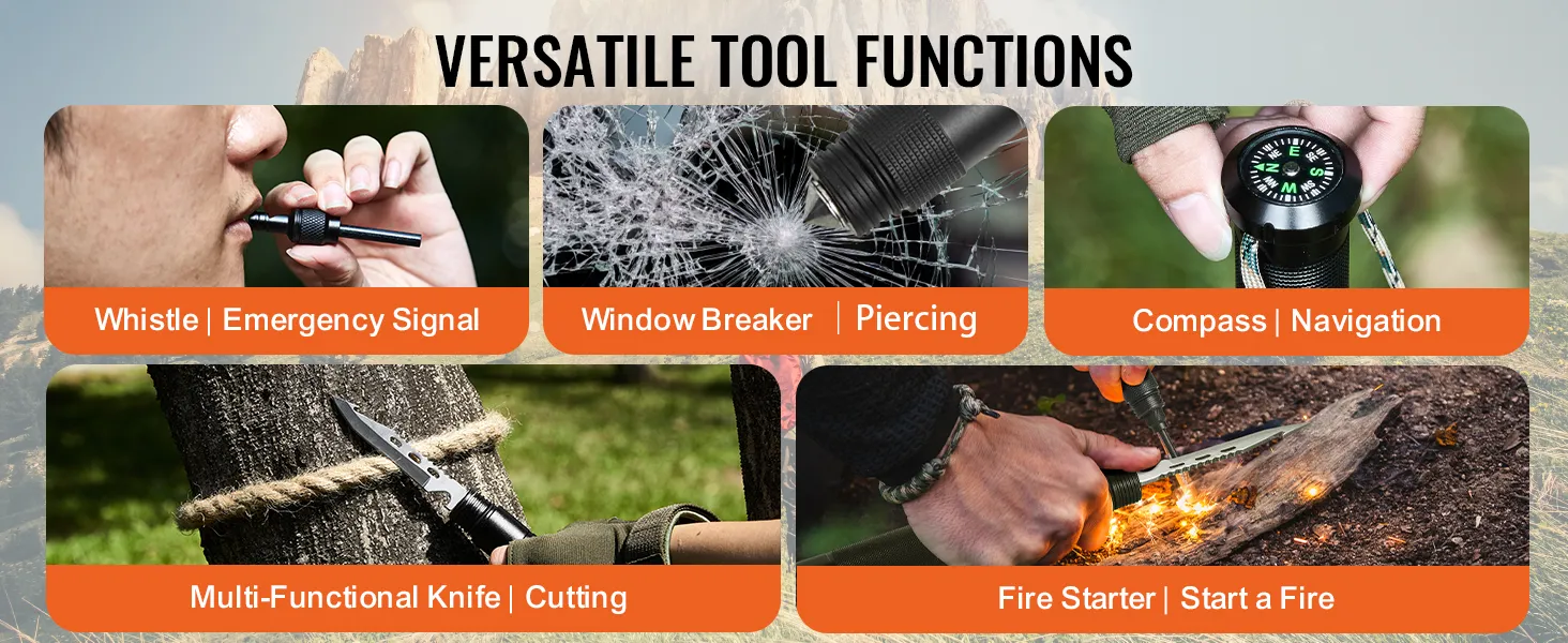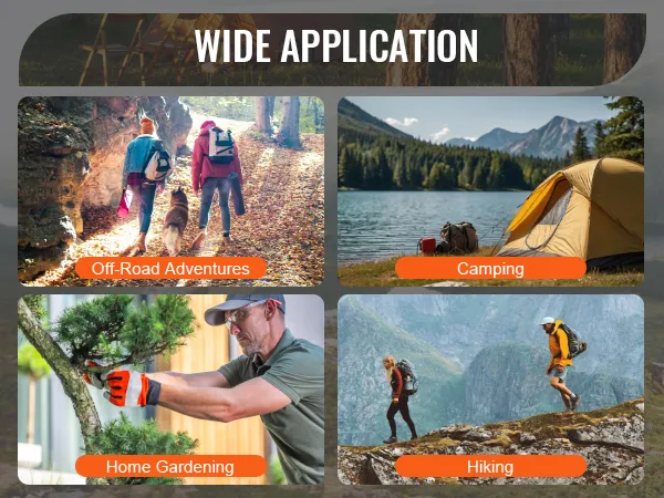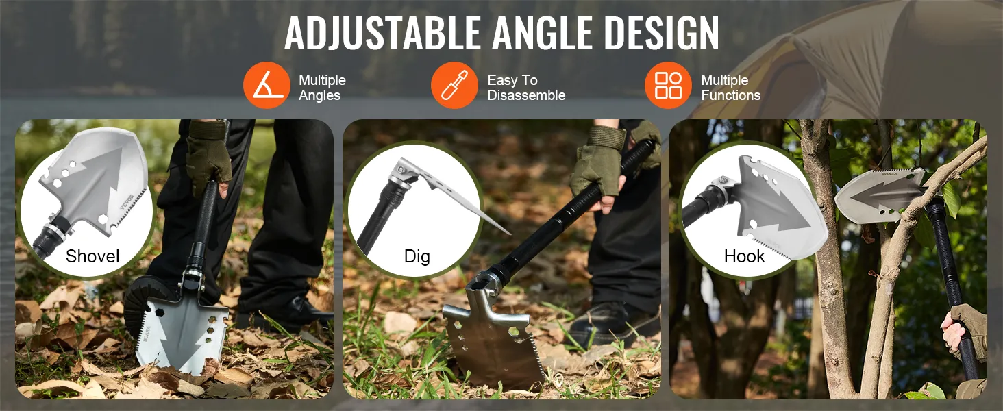 Een breed scala aan gereedschappen voor verschillende doeleinden, van hakken tot graven, dekt alle outdoorbehoeften en zorgt ervoor dat u op elke situatie voorbereid bent.