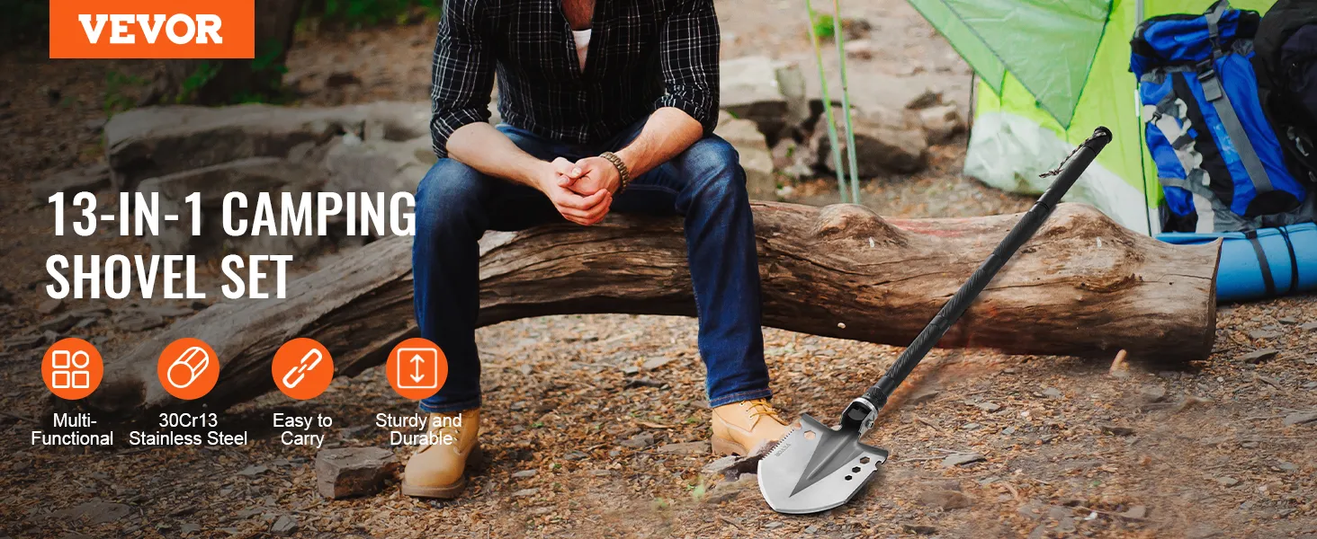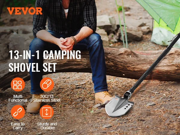 Onze opvouwbare multitool met kampeerschep is speciaal ontworpen voor outdoorliefhebbers. Deze duurzame en praktische gereedschapsset is ideaal voor outdoor survival, wandelen, kamperen en avontuur.
