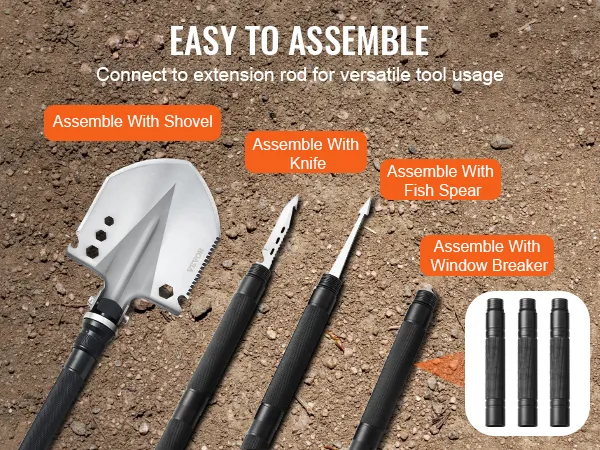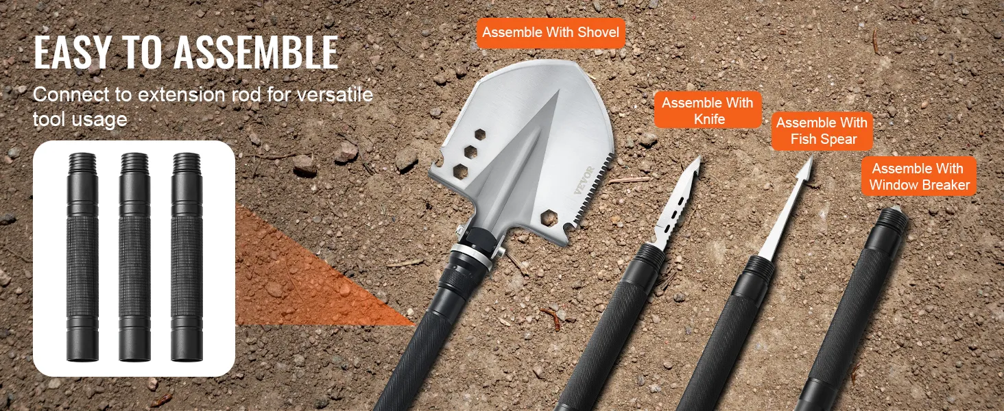 U kunt de draagbare reddingsschep combineren met verlengstokken om de functionaliteit te maximaliseren en elk gereedschap aan te passen voor andere toepassingen!