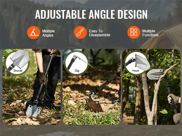 De compacte schep biedt hoekaanpassingen voor extra functionaliteit, zodat u takken kunt graven, hakken, uitgraven of zelfs vasthaken, wat veelzijdigheid biedt in elke buitenomgeving.