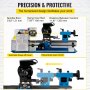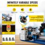 De 7" x 14" precisie mini-draaibank heeft een 4-klauwplaat, MT3-spilconus, MT2 losse kopconus, gereedschapssteun en 3/4HP-motor, ontworpen voor verschillende soorten metaaldraaien en gemakkelijk te bedienen. Door hoogfrequent afschrikproces en precisieslijpen van hoogwaardig gegoten bed. 50-2500 tpm spindelsnelheid sub-trap van twee tranches spindel versnellingswissel snelheidsregeling, traploos instelbaar. Een beweegbare lamp is gratis.
