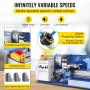 De metaaldraaibank wordt geleverd met traploze snelheden van 50 tot 2500 RPM. U kunt de snelheid wijzigen door aan de schakelaar te draaien en het huidige nummer op de indicator te volgen.