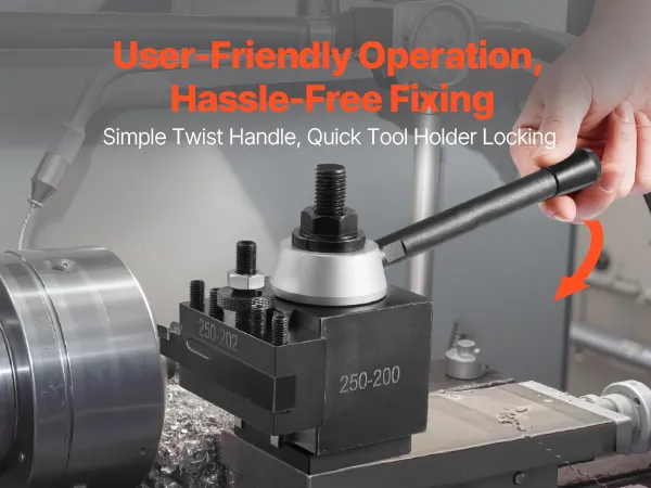 Quick Tool Changes: With a simple handle turn, you can secure and release this lathe quick change tool holder in seconds, drastically streamlining the replacement process and improving workflow efficiency
