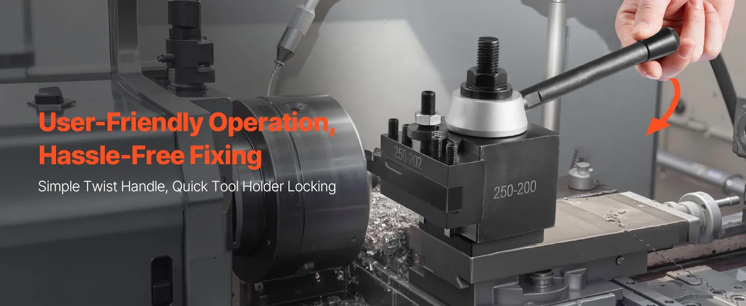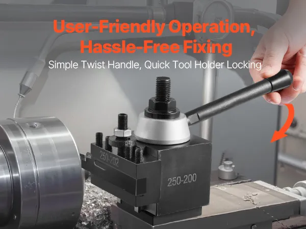 Quick Tool Changes: With a simple handle turn, you can secure and release this lathe quick change tool holder in seconds, drastically streamlining the replacement process and improving workflow efficiency