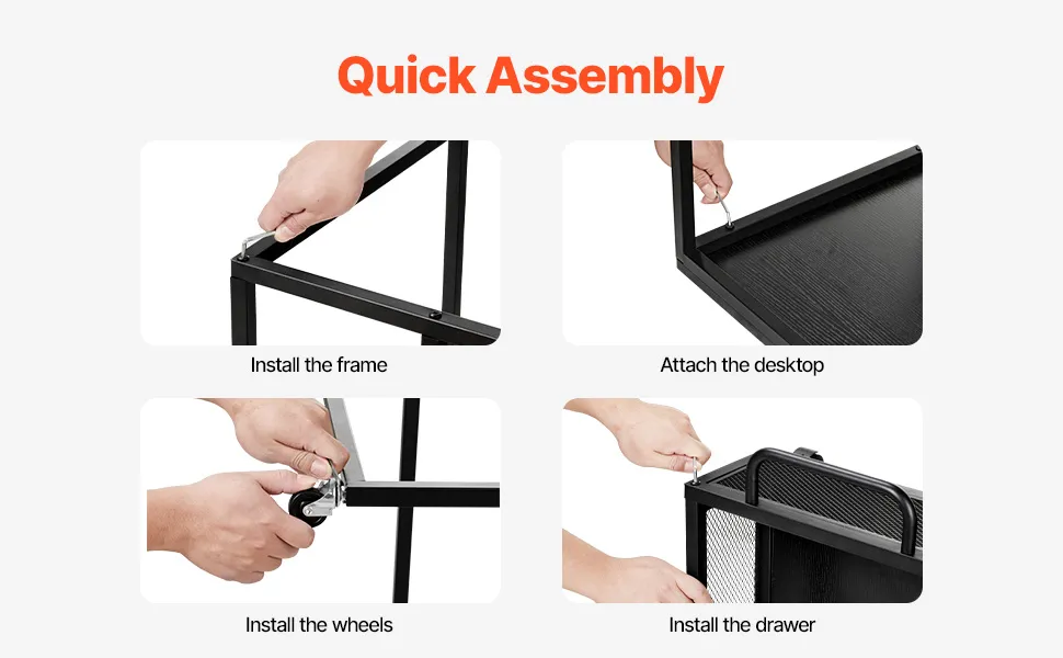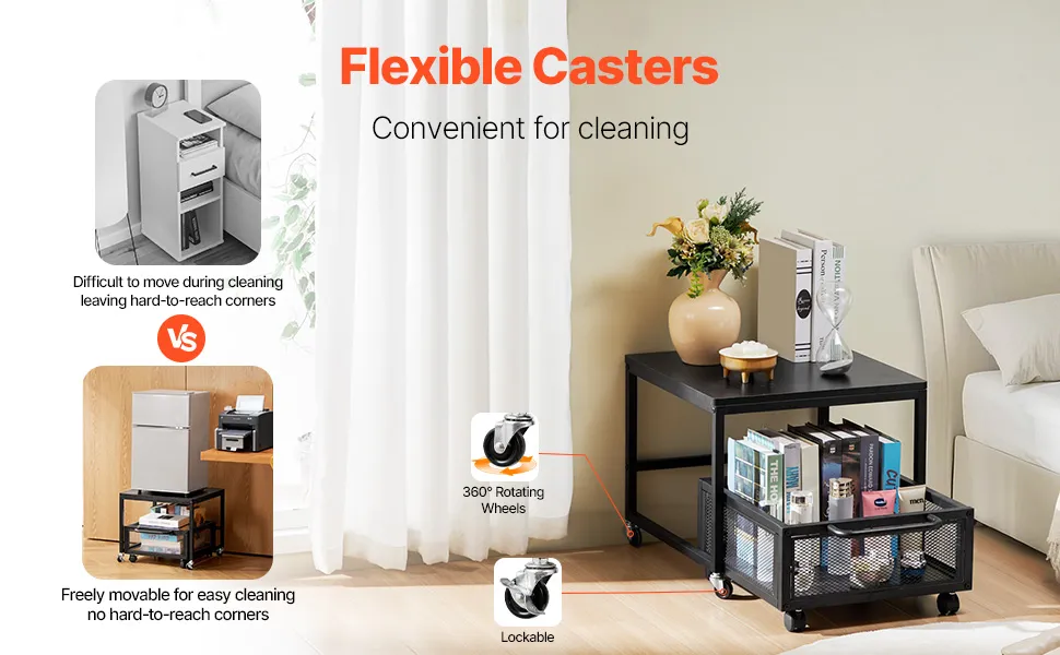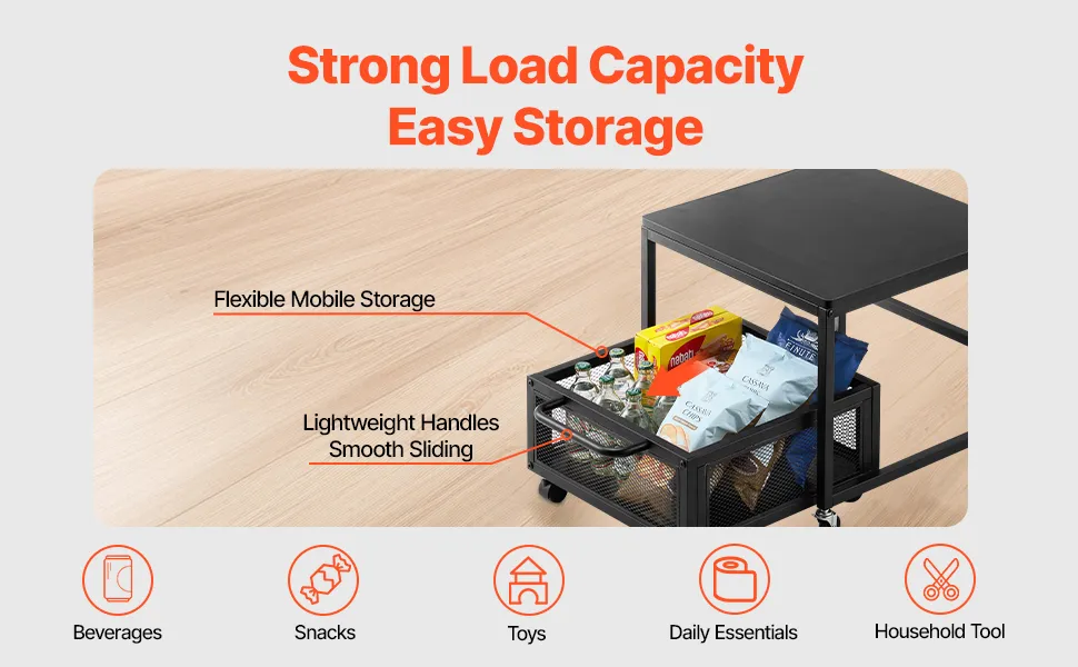 Gebruiksvriendelijk ontwerp: De gladde, afgeronde hoeken van het tafelblad zorgen ervoor dat er geen scherpe randen zijn, waardoor onnodige krassen worden voorkomen. Het versterkte frame voorkomt dat voorwerpen wegglijden. Deze minikoelkastwagen tilt uw apparaten van de grond, zodat u niet hoeft te bukken en uw knieën even rust krijgen