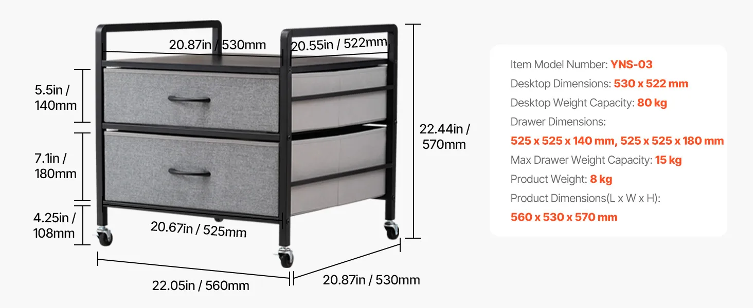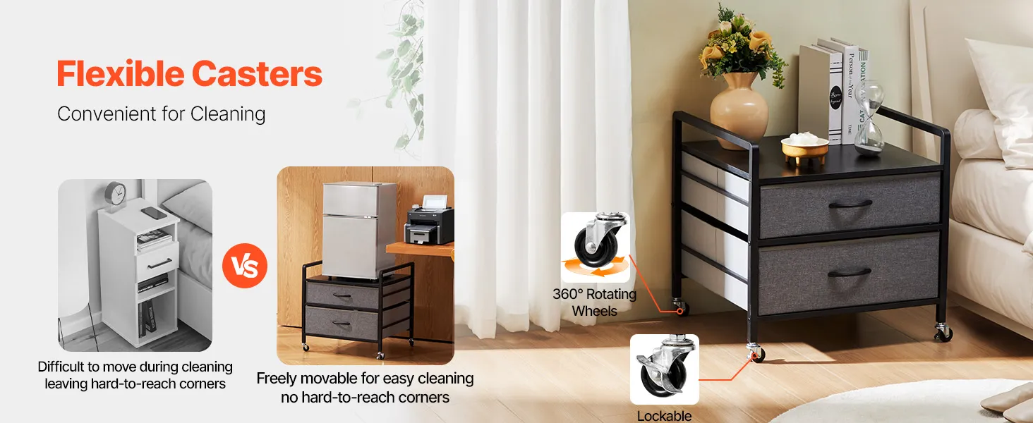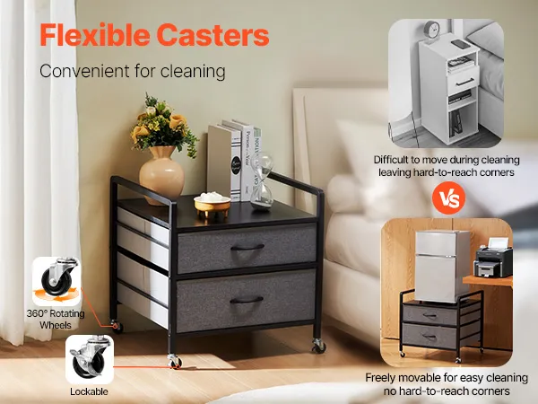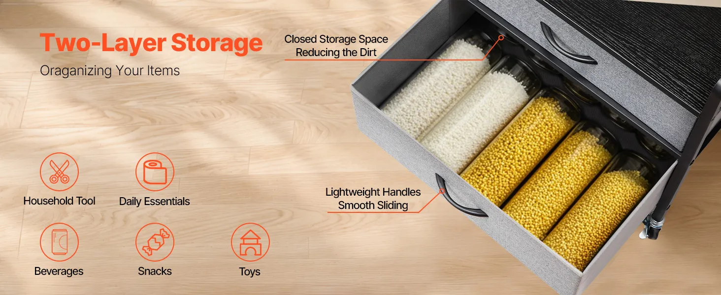 Large Capacity Storage: Featuring 2 breathable, deformation-resistant fabric drawers with lightweight handles, this mini fridge table offers plenty of storage for food, daily essentials, or household tools. The enclosed storage keeps things neat and dust-free.