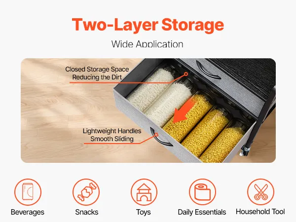 This mobile mini fridge shelf features 2 durable, waterproof drawers providing ample storage for food, clothes, toys, or household items. Keep your home organized while maximizing space.