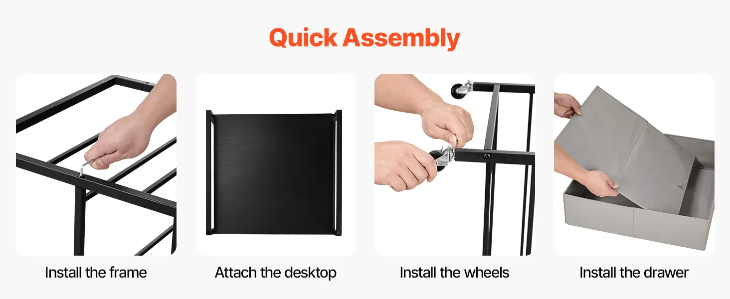 Assembling this small refrigerator stand with drawers takes just 15 minutes! Follow the clear instructions and have it set up in no time—no tools required, making it a hassle-free experience.