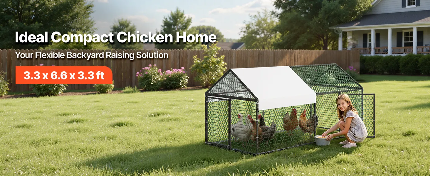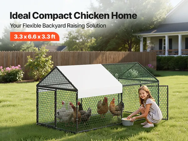 Compact & Efficient Space: Ideal for 4–6 chickens or bantams, this small metal chicken coop provides a functional roaming area. Dual doors allow easy access, while open mesh walls ensure excellent ventilation. Can be paired with a nesting box coop